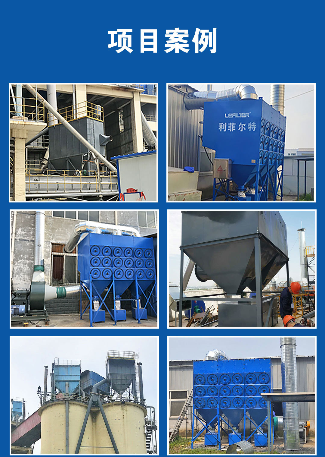 3、塵氣入口設置擋塵板,有緩沖及耐磨作用,不使粉塵直接高速沖擊濾筒,因而能延長濾筒的使用壽命。