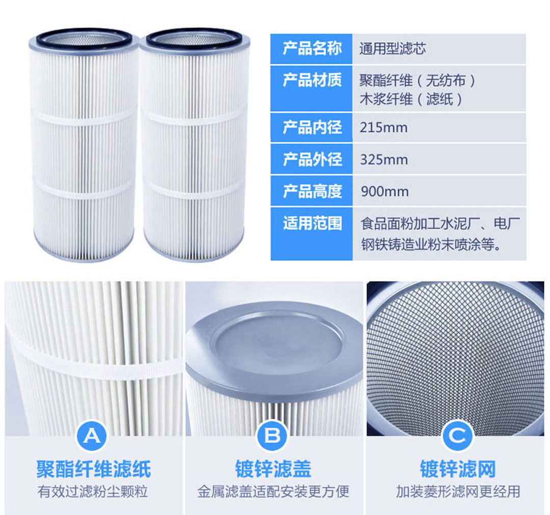 濾芯濾筒一般規格:(325×660、325×600、325×705、325×750、350×660、350×600、350×705 350×900、510×900、408×660、150×1000、152×902、