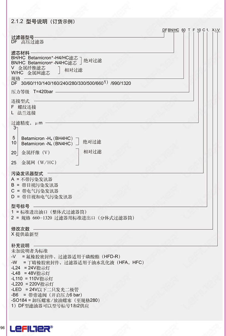 hydac-利菲爾特濾芯、濾清器 采用較先進的防腐高效的超細纖維凝聚材料作為過濾主體,該系統(tǒng)濾芯的濾床組合預(yù)過濾層、超細纖維層、支撐層、過濾層和重力沉降層等組成,使壓縮機輸出空氣中3μm以上的固體顆粒能全部被濾除,而極微小的約0.01-1μm的油水氣溶解體在通過濾芯時被凝聚成較大的油滴,積聚在濾芯底部,再通過濾芯底部凹處的回油管虹吸返回至潤滑系統(tǒng)從而使壓縮機排出更加純凈,無油的壓縮空氣。