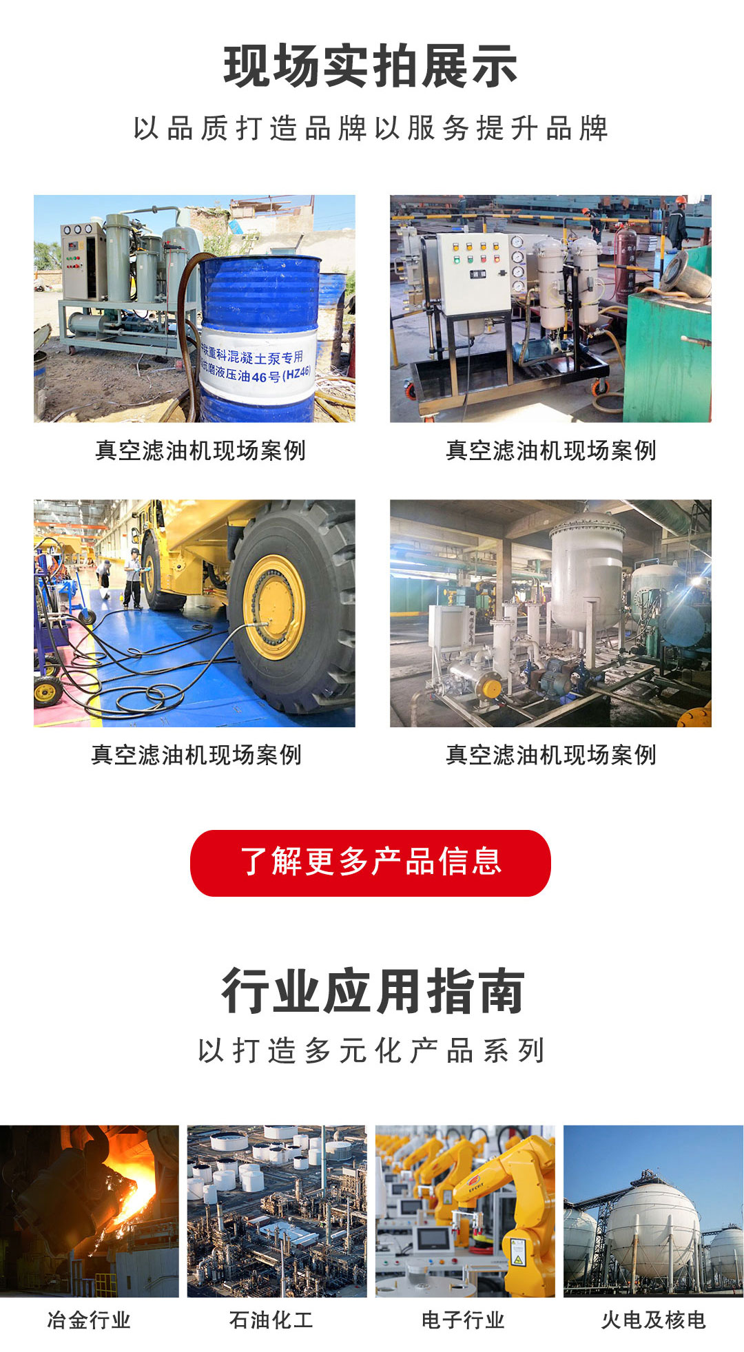 LYC-63B三級液壓油濾油機是一種預過濾和為油箱注油及凈化已存油液系統的理想凈化設備,即可以對新油進行加注前過濾也可用作液壓潤滑系統油液的定期過濾凈化。這種濾油機具有噪音低、自吸能力強,運轉平穩等特點,高壓管路設有溢流保護裝置,可有限保護液壓系統的安全,濾油機殼體采用快開結構,不需要任何工具,便能迅速快捷地打開上蓋,更換濾芯。