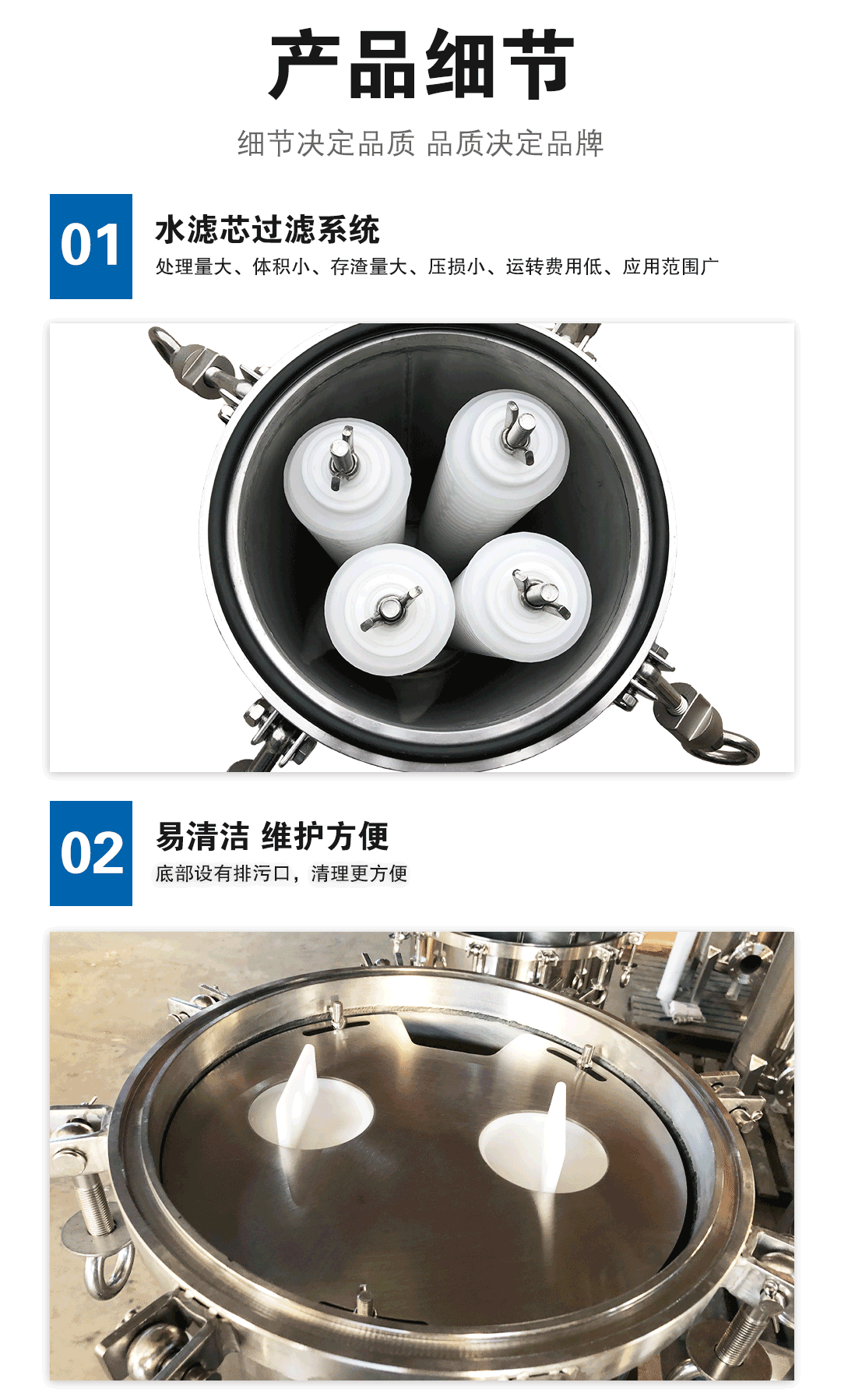 工業用水過濾保安過濾器采用大流量打褶濾芯,多用于水處理中流量較大的保安過濾、清洗過濾、反洗過濾、冷凝液過濾等。本公司憑借多年過濾技術,經過對結構和工藝的不斷改良,現生產的大通量過濾器,其結構緊湊,工藝先進,質量穩定可靠,在多個領域得到廣泛的應用。過濾器設備選用3M、利菲爾特、利菲爾特等進口大流量打褶濾芯,可以獲得更大的有效過濾面積。確保在緊湊的空間中達到穩定的過濾效果。