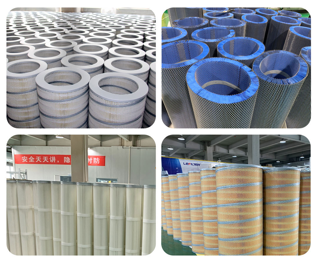 木漿纖維空氣濾筒空氣除塵濾芯覆膜聚酯濾筒,采用進口PTFE覆膜聚酯濾料。覆膜聚酯濾筒表面過濾,極光滑,不易黏附,更易于脈沖反清灰。濾芯進口膜精度高,過濾效果好,根據工況較細可達0.03微米。覆膜聚酯濾筒端蓋骨架均作防護處理,PTFE聚集優秀的化學耐腐蝕性。