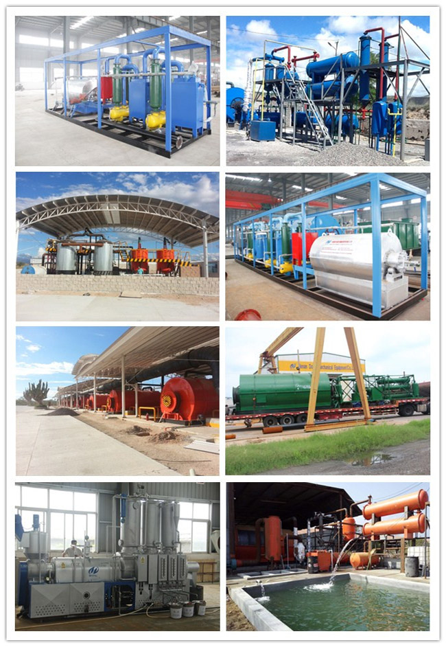 一 、廢橡膠煉油設(shè)備的工藝流程: 1、將原材料直接裝入裂解釜中,催化加熱,餾出油蒸汽,油氣經(jīng)過(guò)汽包緩沖釋壓,進(jìn)入冷凝器。 2、可液化部分,冷凝為燃料油,不可液化部分即同步氣體通過(guò)安全裝置水封、燃?xì)庀到y(tǒng),一部分被可燃性氣體被捅入燃燒室充當(dāng)燃料燒掉