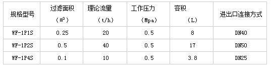 快開式單袋式過濾器技術參數;