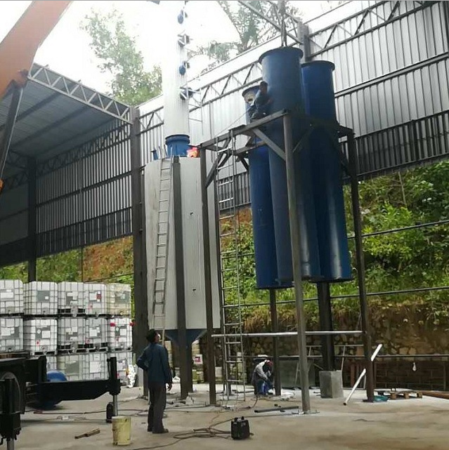10. 余熱利用,將反應釜爐膛內的煙氣溫度通過除塵器進入預熱器,將物料升溫加熱確保生產連續化。